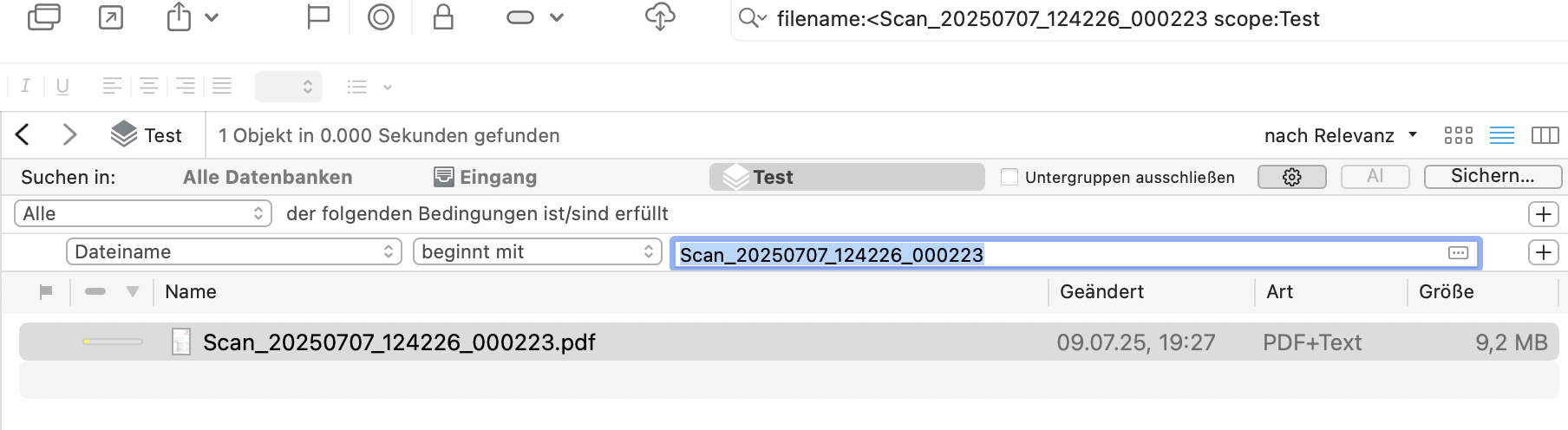 A last suggestion, but very minor one: when searching for the filename with the correct options activated, the “search closeness” indicator should, if I understand it right, show a high degree of correlation if the filenames match exactly (which is the case in the screenshot below). Today, it shows a very low degree of correlation: