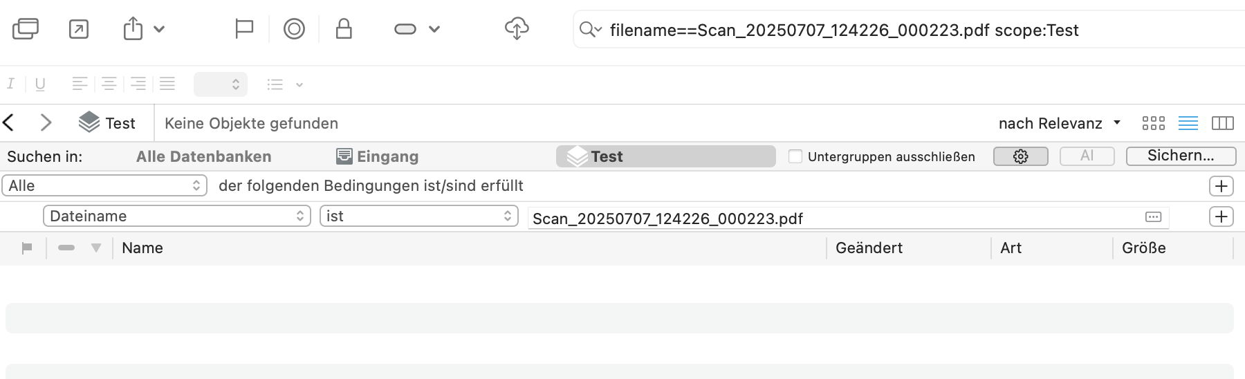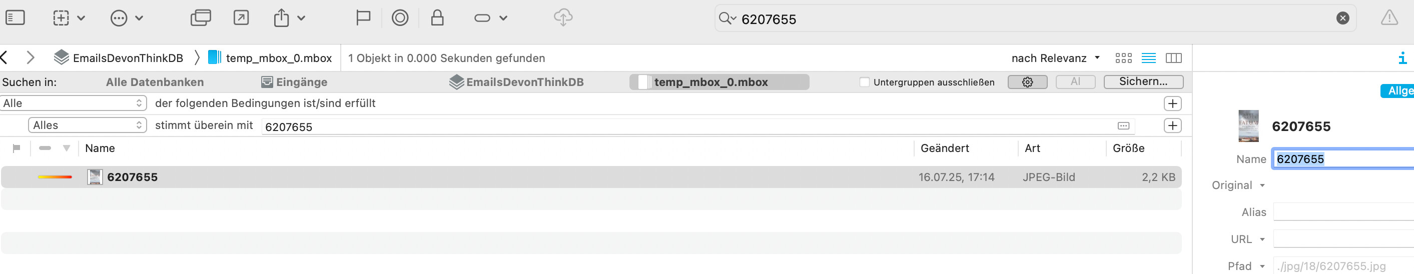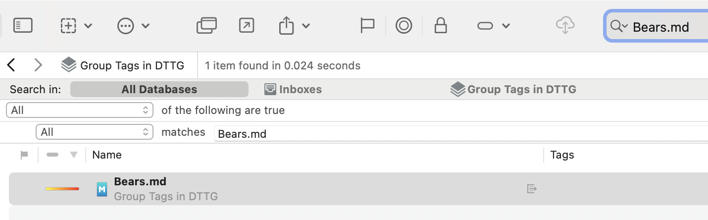 For my use cases, there are situations where this is not ideal. For instance, if I stumble on a file somewhere in my archive, and want to understand where it came from, what’s its context. Ideally, I’d like to copy its filename (with the extension, since I want to be specific and don’t want to find other files that have the same name but not the same extension), search for it in DT, and understand how I used it in the past, who sent it to me, etc. The current working of DT makes it nearly impossible. If I paste the filename of an attachment into DT, it will not be found in the two places I’d expect it: