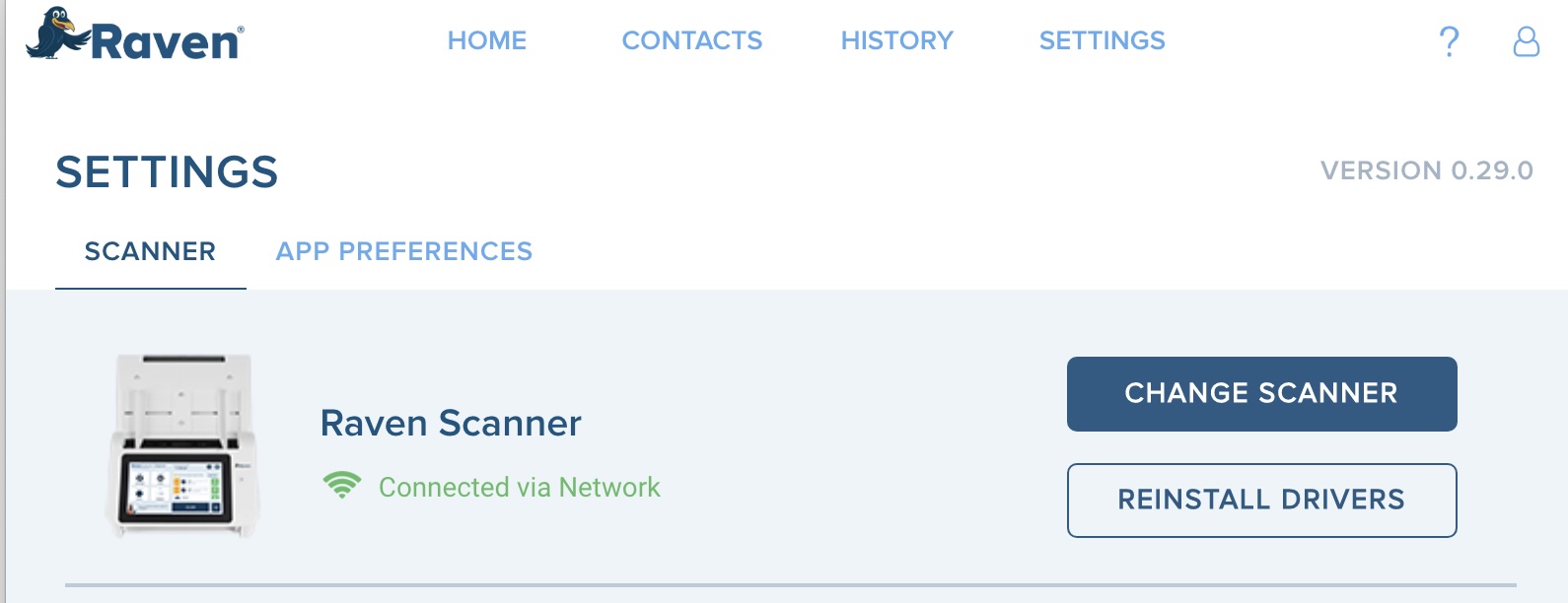 I have just received a Raven Original Scanner and connected it via Wi-Fi and it works with DEVONthink without any issue. In the Raven Desktop app settings does it show the connection via the network as below?