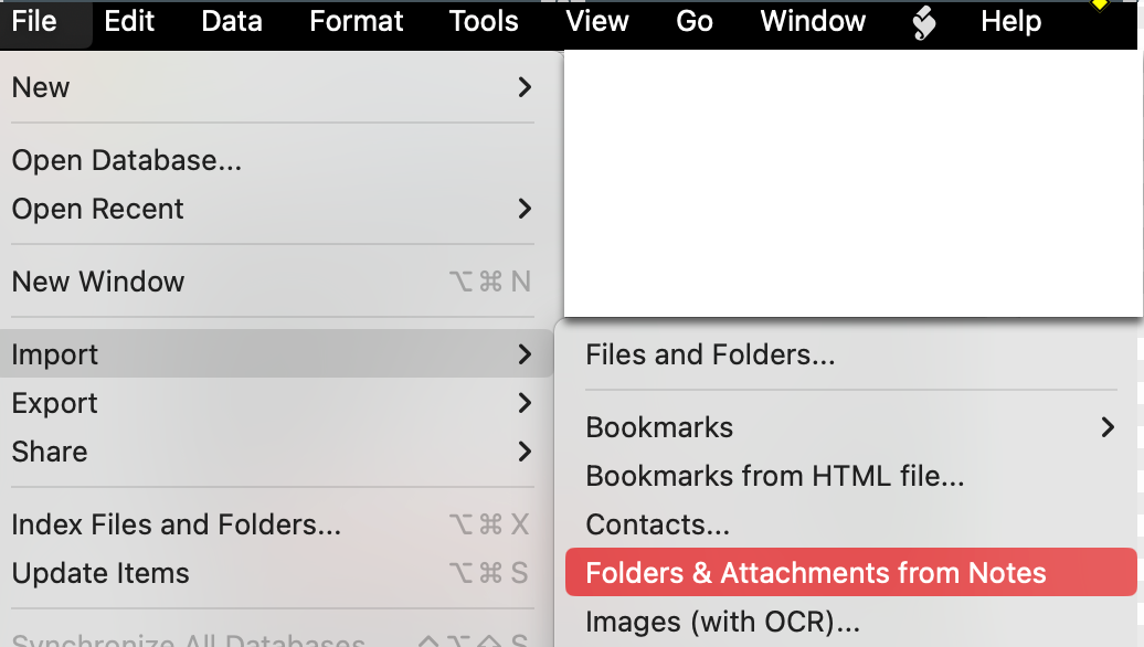 My problem is that when I click on File→ Import→ Folders & Attachments from Notes, my inbox is flooded with 800 apple notes and folders. It’s a mess because the apple notes are mixed with other items in my global inbox.