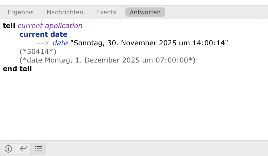 in Script Editor, what output do you get? I can’t try that here, because my locale is set to German.