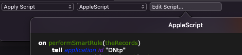 As for the colours, I wasn’t talking about the colours in Apple’s Script Editor — I guess that would apply if you only used external scripts with DT4, but that’s a faff for inline scripts. If you edit a smart rule in DT4 that has an inline script, and click the “Edit Script…” button, DT4’s own script editor is what’s showing up with unhelpful colours. (At least Script Editor does let you configure them!)
