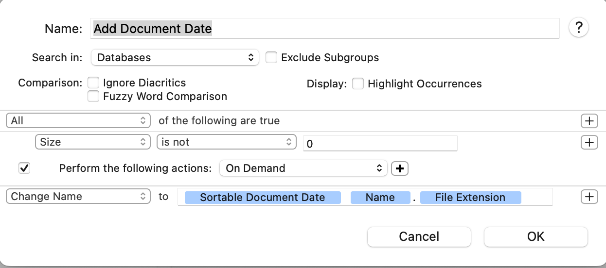 I would like DT to automatically rename the document. It should recognize the date of the document and place the date in the format year-month-day at the beginning. Then, it should automatically learn what the names should be based on the documents that already have names. How can I do this?