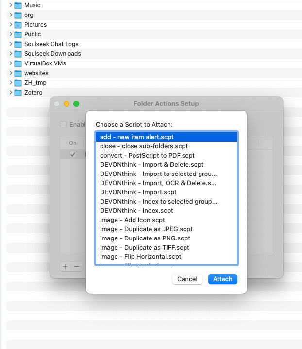 yes, the scripts were indeed installed. However, they weren’t visible until I used “Folder Actions Setup…” under the contextual menu in Finder. It is working now. Thanks.