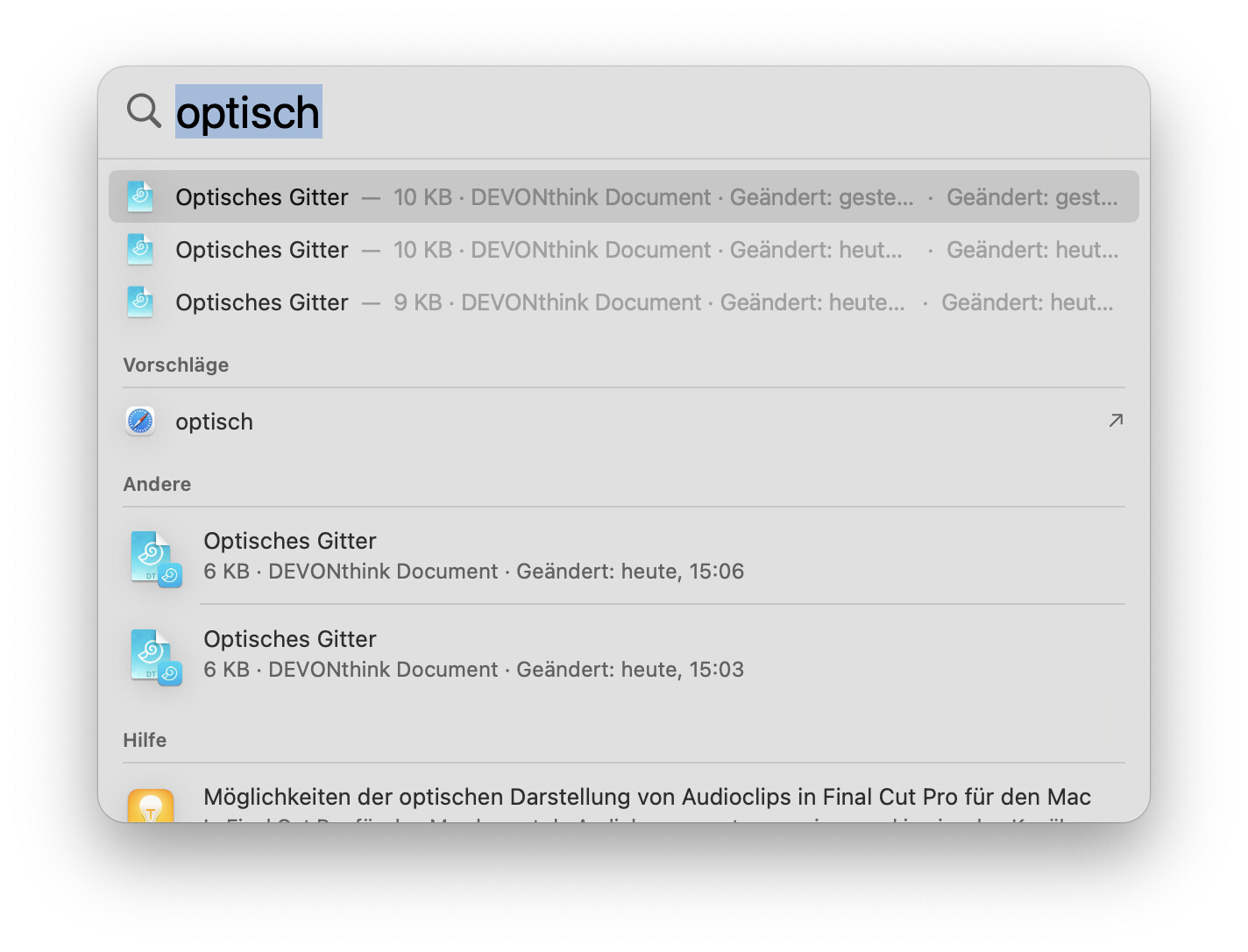 I noticed that with the new versioning feature in DT4, Spotlight now lists every version of a note. This makes searches difficult. Most of the time I only want to find the current version, but all previous ones appear as well: