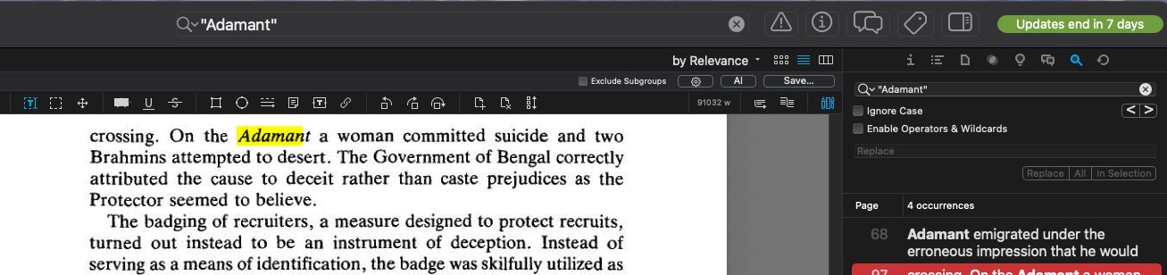 I know that I can use the search Inspector and review each item in turn, but when I have 30-40 multi-page document hits to then review, it sort of diminishes the level of DEVONthink fun and makes for a very tedious workflow.