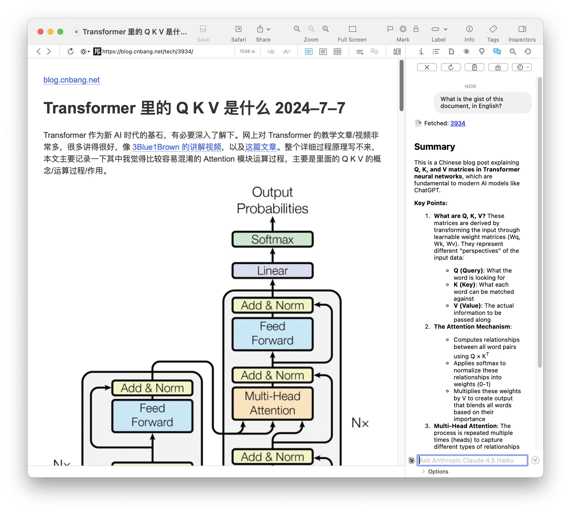 PPS: You certainly can chat about a selected webarchive document and I’m not sure where you’re looking for a Chat button. If you’re referring to a document window, you can choose View > Customize Toolbar and add the Chat button. Also, you can invoke the Chat assistant popover at any time via the Tools > Chat command. And of course, the Chat inspector is available. Here is a webarchive queried with Haiku…