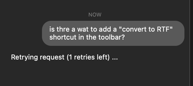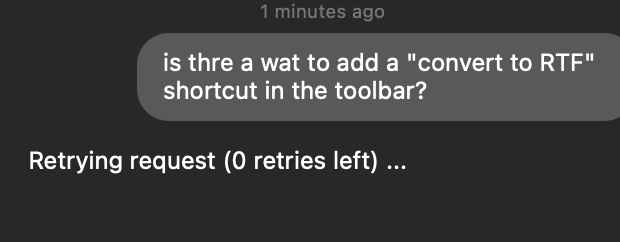 Yes, though, to be honest, I don’t spend much time with the smaller models. However, I didn’t choose any of these small models for the help; they are pre-chosen, and I cannot switch to a higher model. Here are screenshots showing the model selected in DEVONthink Help, the inability to choose a model (only a provider), the prompt, the “retries” I immediately get, and the error output showing there aren’t enough tokens (which is expected, since Haiku doesn’t allow for as many). I never had this problem before. I don’t remember which model was selected, but I know it wasn’t Haiku.