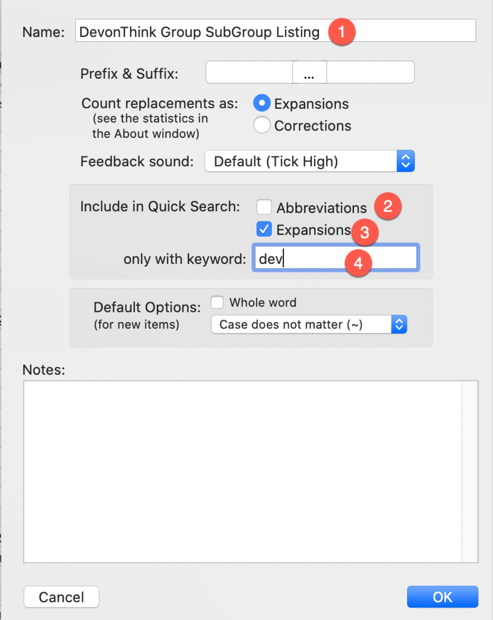 In itself, it’s OK. A minor migration glitch that I can live with. The problem however is that following a migration from Evernote, the DevonThink search popup (in all forms) becomes useless because all these thousands of supplementary subgroups are included in search results. For example, if I type “DevonThink” in the search popover, instead of seeing the less than 5 actual groups/subgroups with DevonThink in their name, I get about 150 results (98% subgroups created during the Evernote import), and I end up having to scroll up and down to find the correct group. It is very tedious and time consuming if you consider the many times a day I use the DevonThink search popup. By generating a list of groups and subgroups (thanks to @BLUEFROG 's script), I can clean up all the garbage subgroups and, using Typinator end up with what the DevonThink search popup should look / feel like.