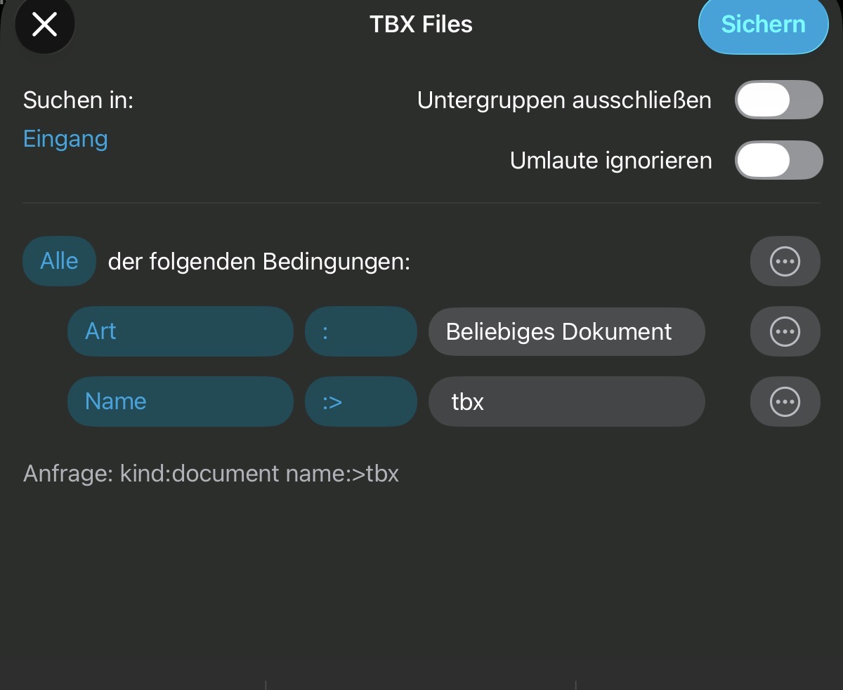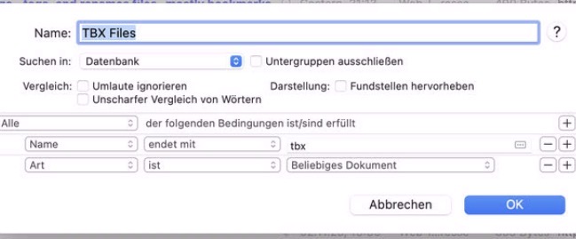 Sync of modified SmartGroups to and from DTTG doesn’t work. New created ones in DT don’t as well. And this ends in not being able to add SmartGroups in DTTG, because I’ve not found how to create one. Perhaps it is very easy, but I cannot find the way to create one.