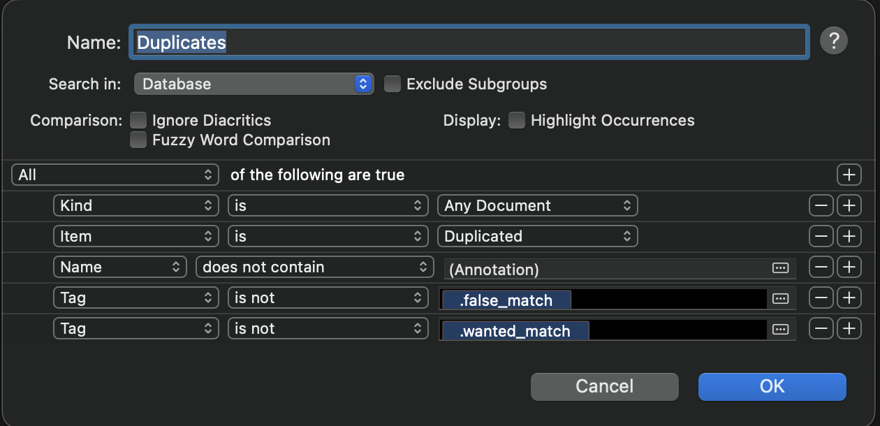Good, so we can concentrate on local smart groups. Perhaps @rfog could make a copy of that first sample group and remove the tags conditions from it – does that sync? If yes, does it sync if you add a condition like tags is tag without a leaving dot for the tag?