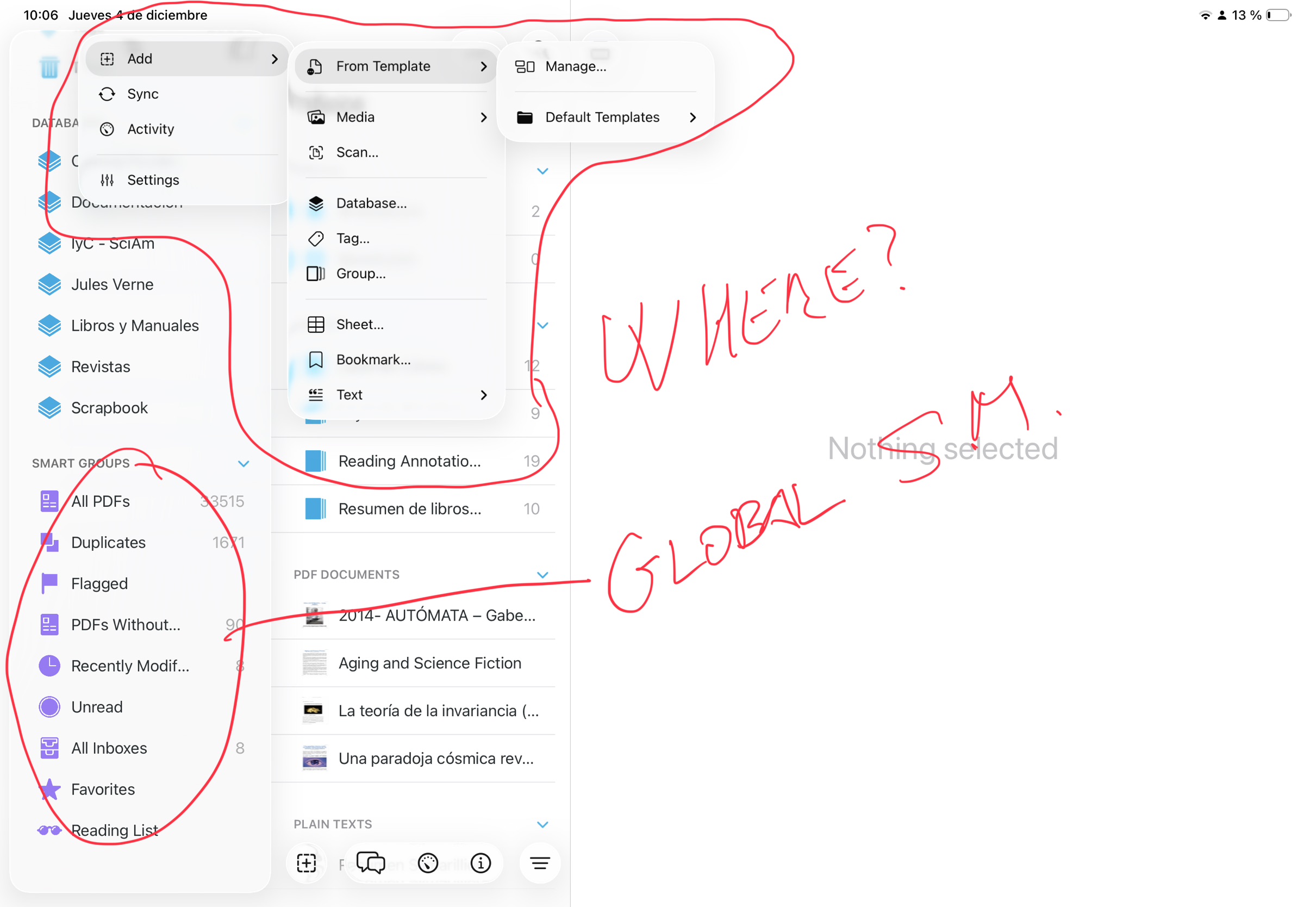 I would be really happy if smart groups would work with full functionality on my iPad including sync because I love to use my iPad for all this organisational staff and smart groups are really helpful for this. Also running through my notes and taking new notes using my iPad would be absolute my favourite workflow because I love to use my pencil instead of my keyboard. Using the iPad with screens to access Devonthink on my Mac is possible of course, but not comfortable.