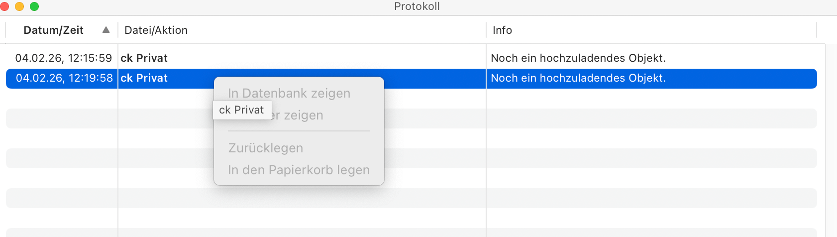 Perhaps related: On the Mac, I get the message that there’s one document in one of the databases that still has to be uploaded (see screenshot). How do I identify this document? Right click gives me a context menu where every item is disabled. The item==pending search on the Mac returns nothing.