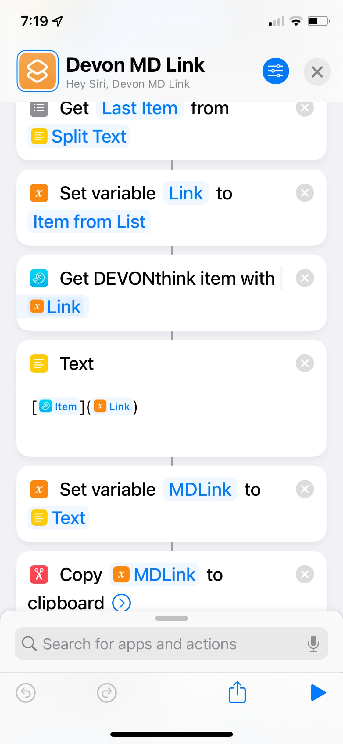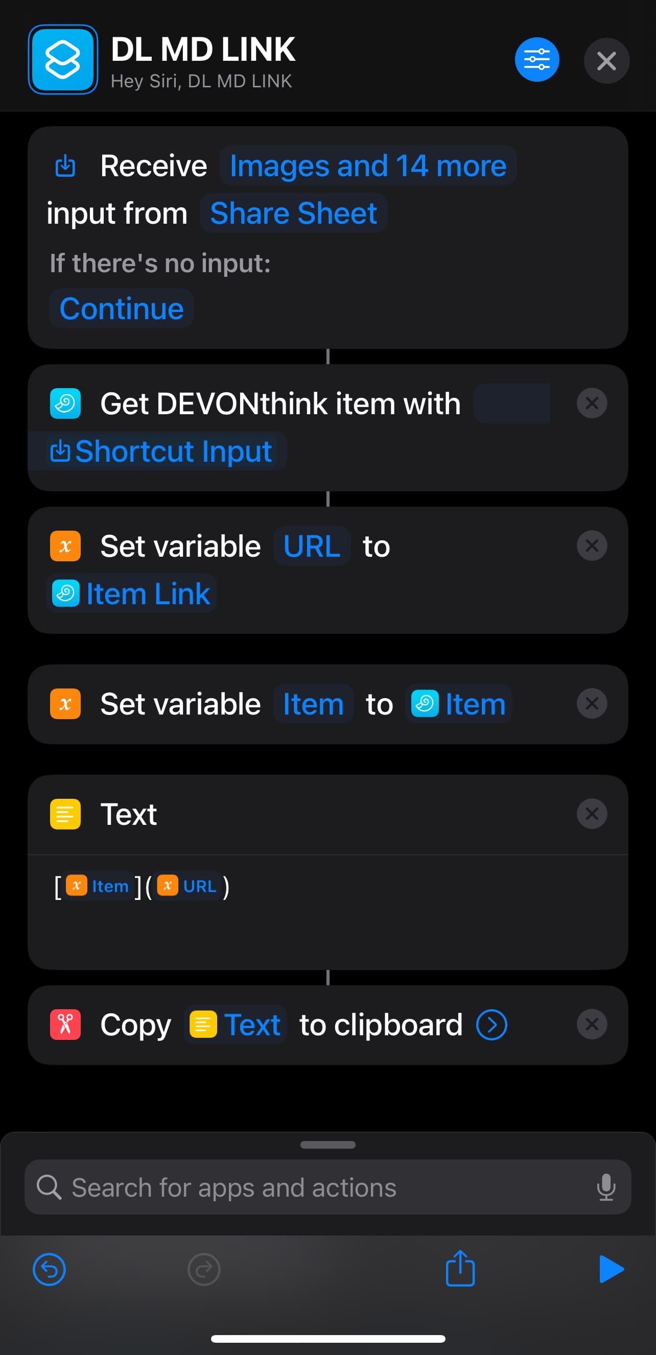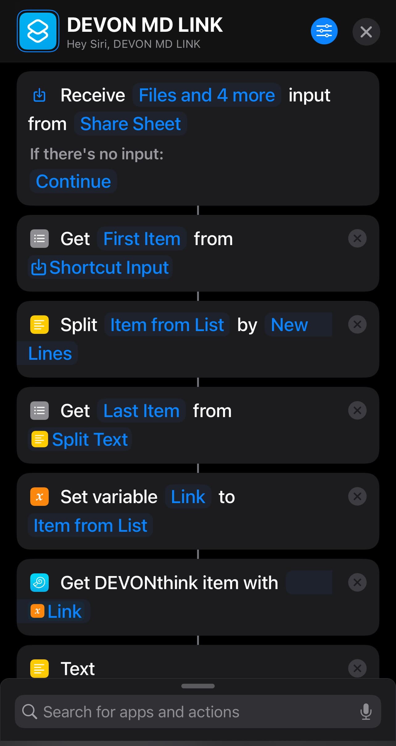 The DEVONthink Get Item method in Shortcuts returns an error when tied to the share sheet. The get item method on other apps behaves as expected. The DEVONthink Get Item method works if it is getting it from the clipboard. Shouldn’t have to copy the item first before running this method. It should work fine with the share sheet. I’m running iOS 15.01 on an iPhone 13 pro max. Does anyone have any idea why this is giving an error instead of getting the item?