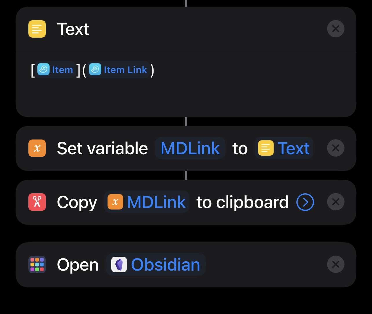 Now, if only Obsidian would release an API to allow Shortcut functions. When this happens, I’ll be able to fully automate the process.