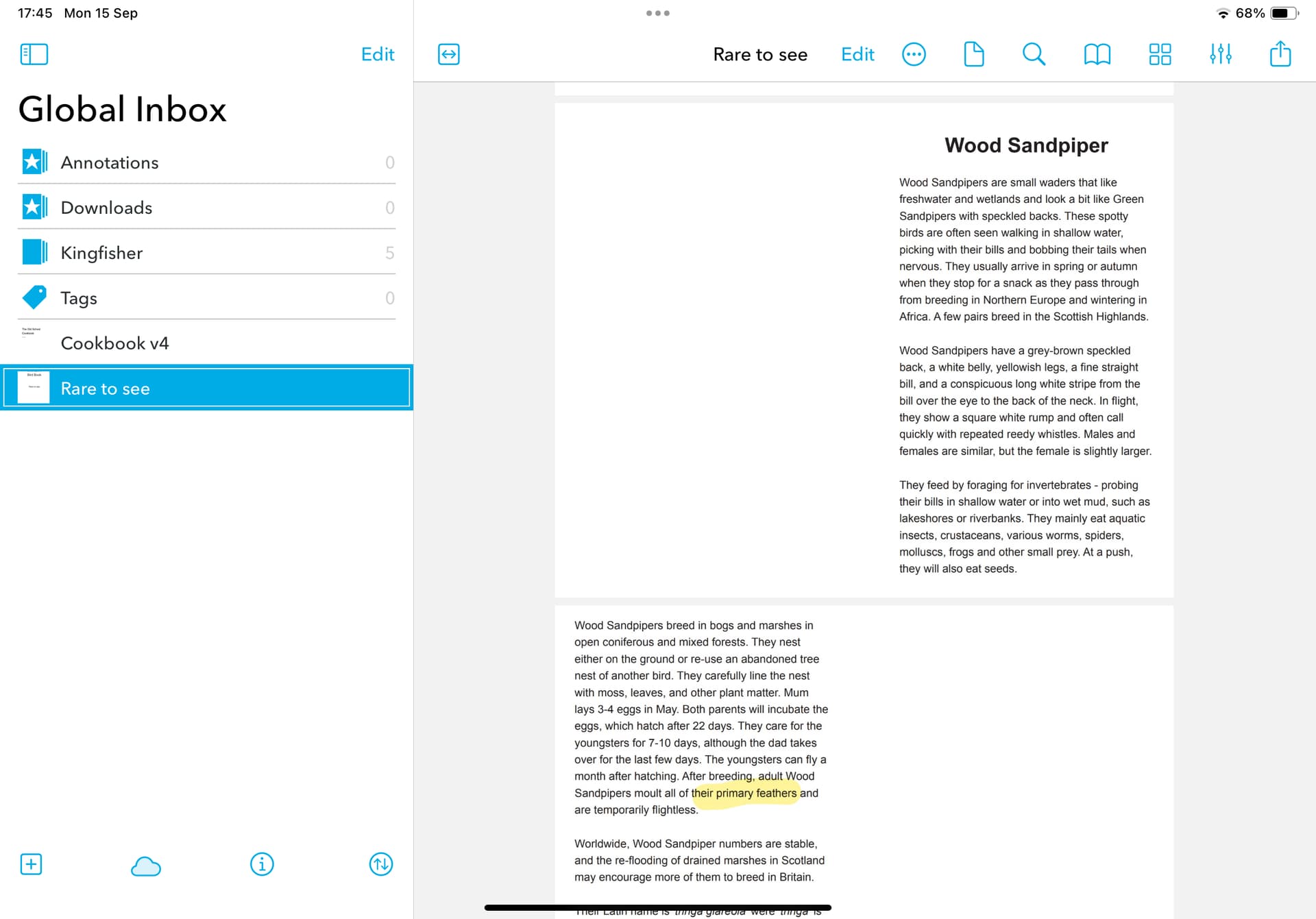 Not sure if this is a bug. I use a keyboard with my iPad. I wanted to copy text from a PDF viewed in DDTG into another app. I used CMD-Tab to switch back and forth between the PDF in DDTG to the other app. Every time I switched back to DDTG the position in the PDF often changed, sometime by several pages. Other times the zoom level on the PDF changed to tiny.