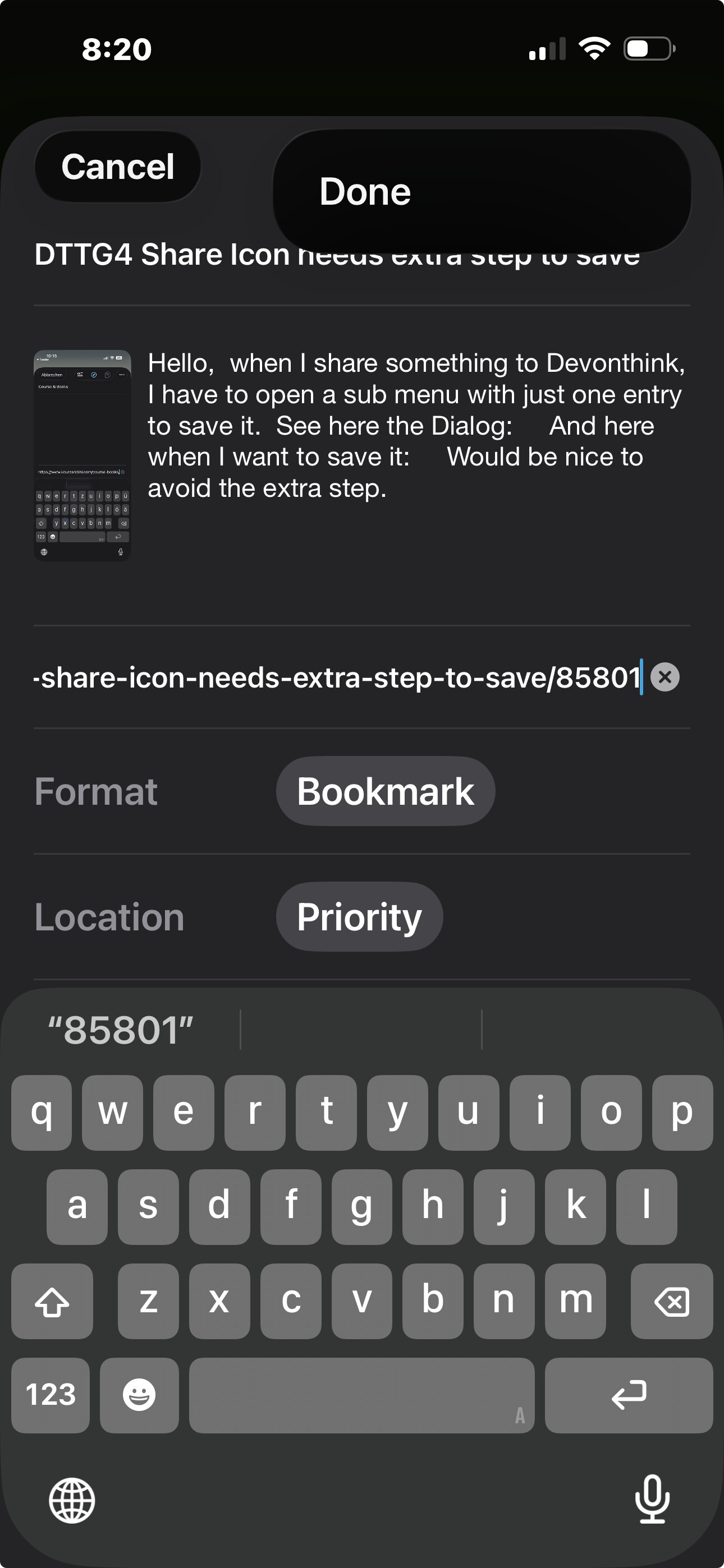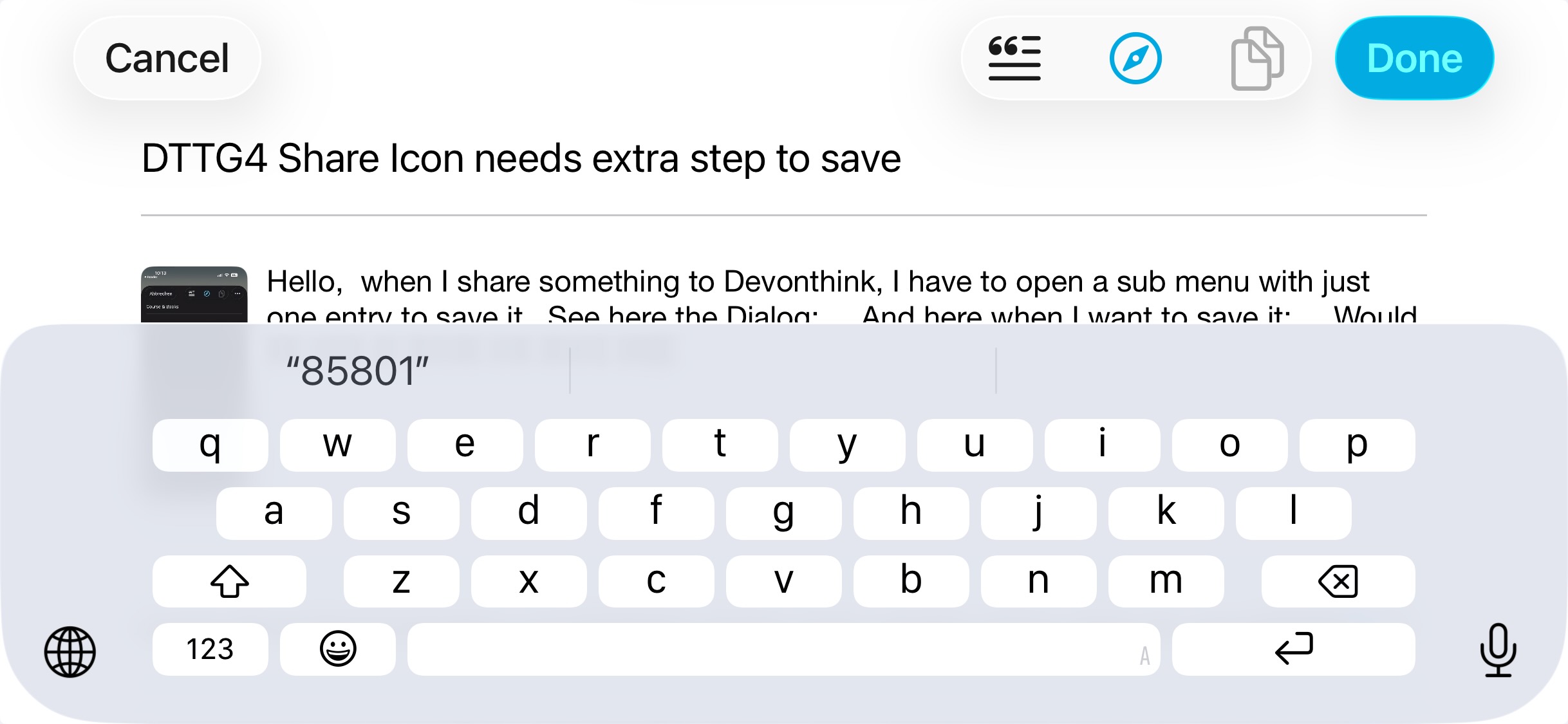 when I share something to Devonthink, I have to open a sub menu with just one entry to save it.