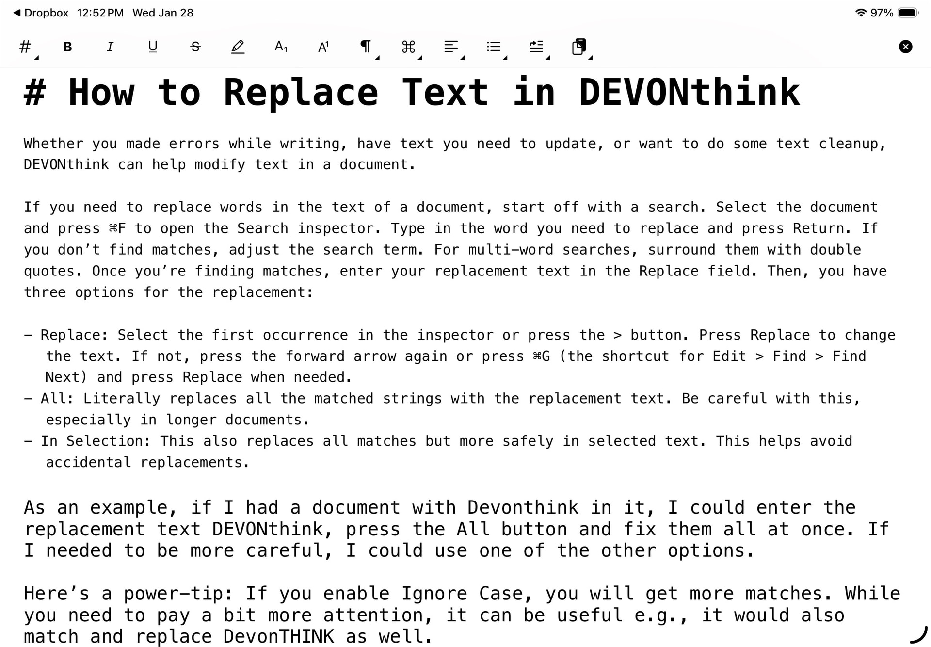 When editing a markdown document in DTTG4, I find the text size is all over the place. Here is a picture. Text different size in different sections. When making something italic, the text size jumps bigger etc. I am finding it annoying. I have text size set to 14 in settings, but this does not seem to have any effect. Apart the headings, I would expect all text to be the same font size?