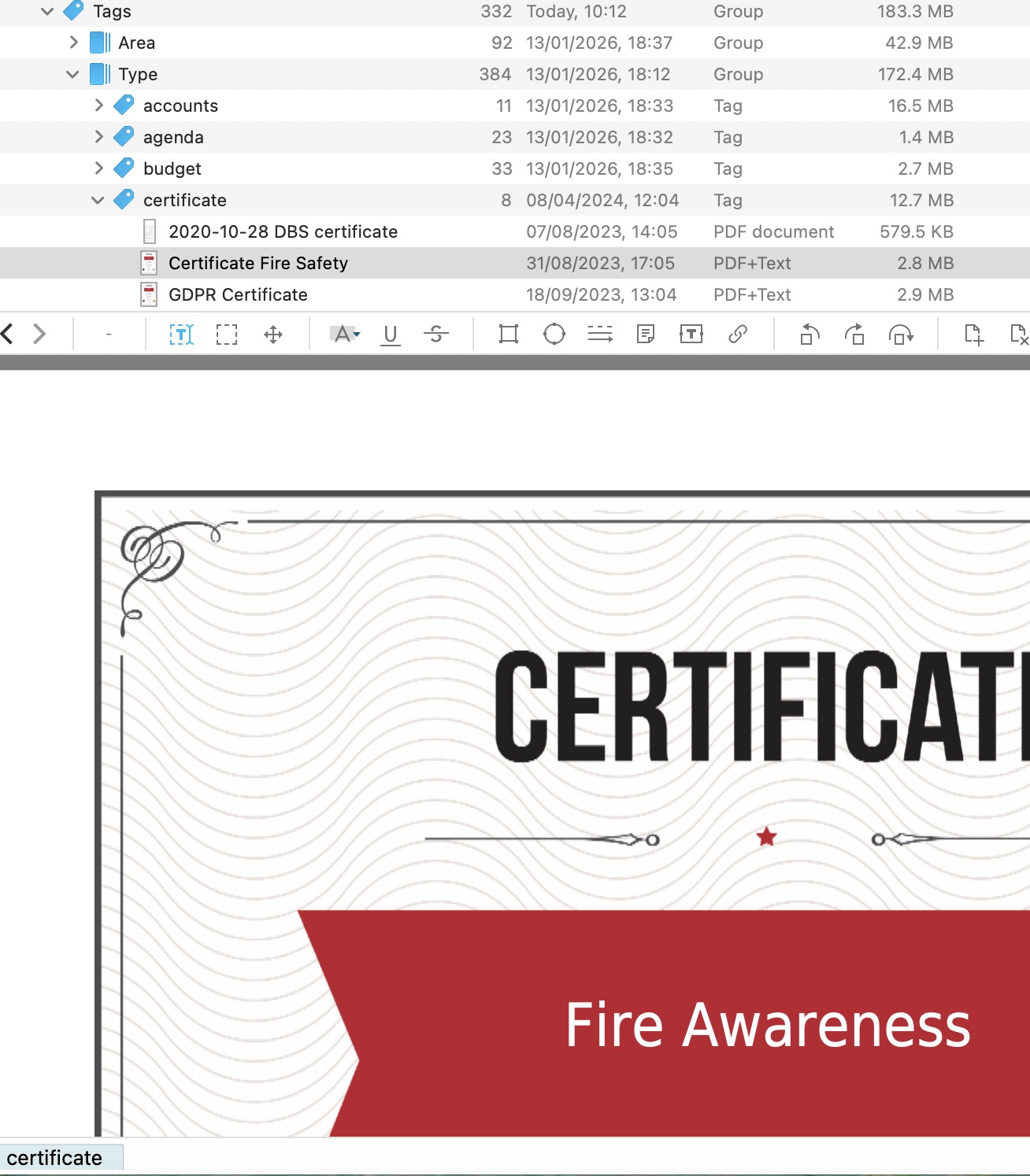 I have noticed a behaviour I think is incorrect. In DT I have my tags organised into groups with the groups excluded from tagging. The groups do not show in the tagged documents: