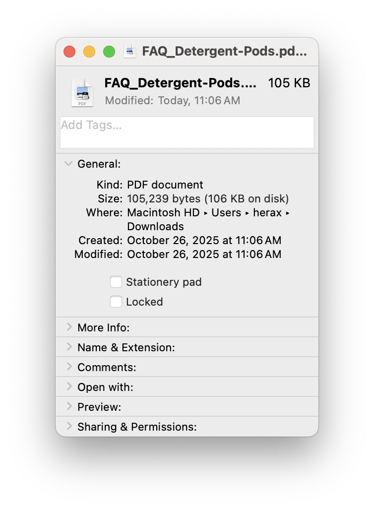 I just downloaded it so the file has a creation and modification date of 10.25.2025. That is accurate as far as the file on my Mac goes.