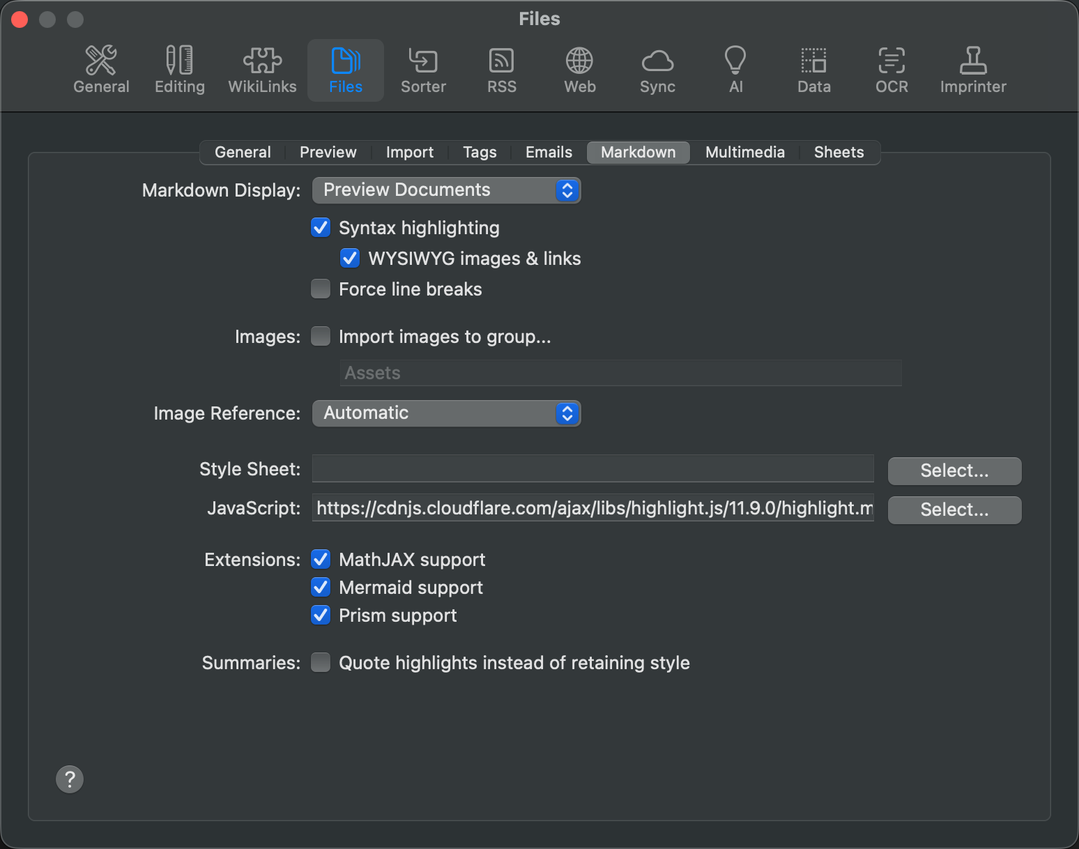 See the note in the Documents > Markdown Documents section of the built-in Help and manual…