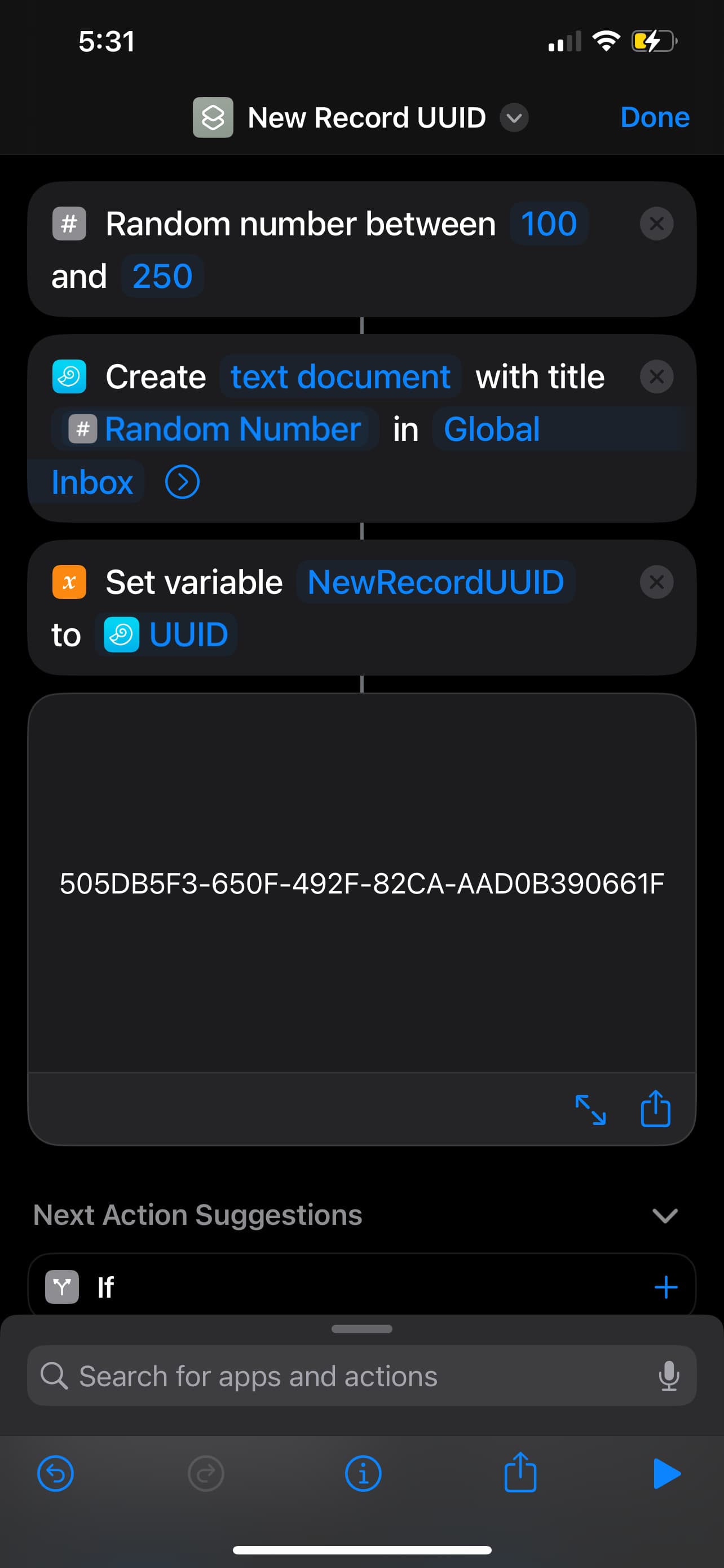 The ask-for-input text is working and I can create a new markdown doc with the right stuff but I can’t get it to create the group it should go into and to put it into that group.