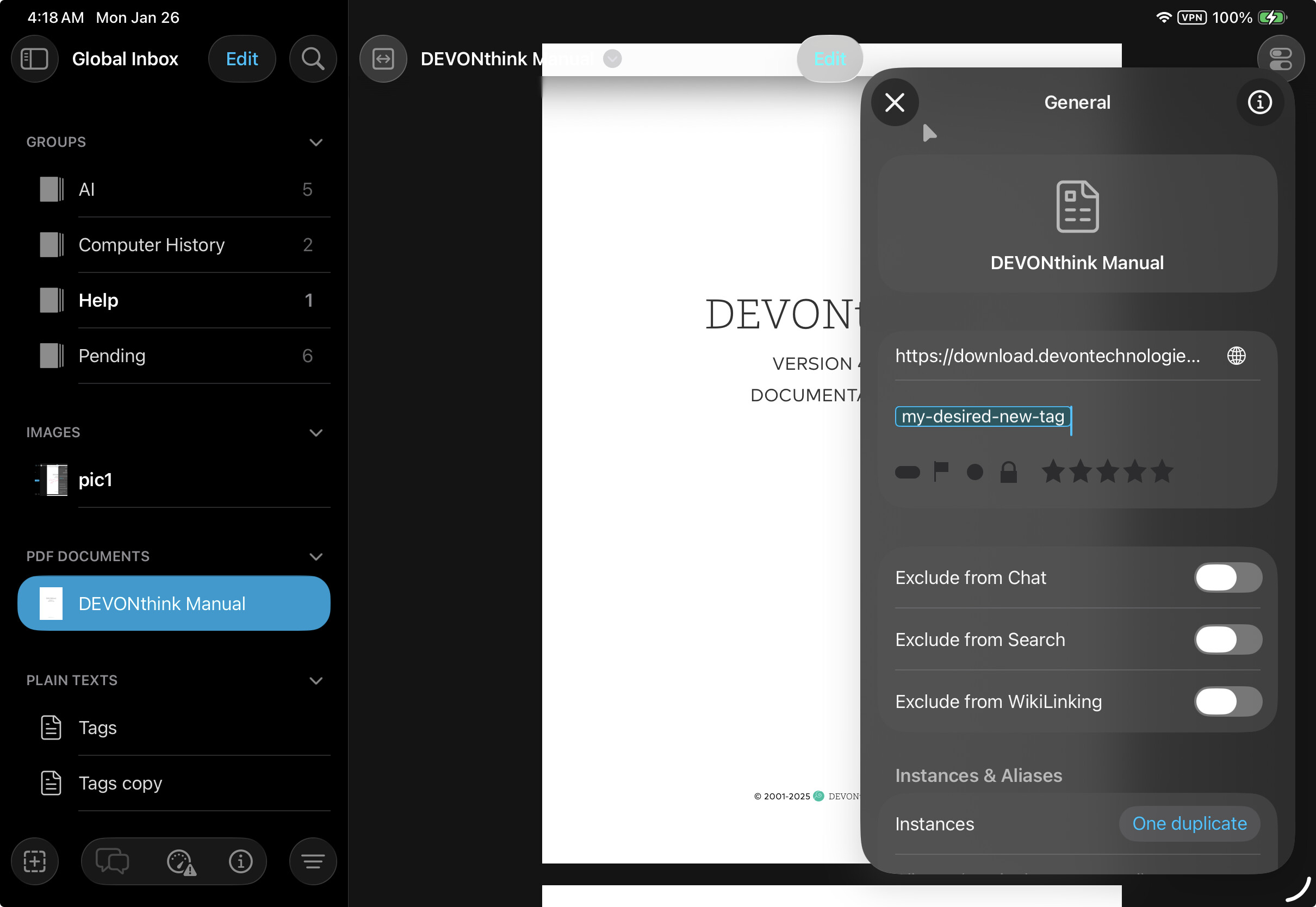 After hours of pecking through all the different icons and buttons, I finally figured out how to create a tag. But how do I add it to the document. In DT4, I can drag/move a document to the tag. When I try to move the document in DTTG4, I am unable to either drag it to the tag or explicitly move it. There is no way to drill down into the tags through this option.