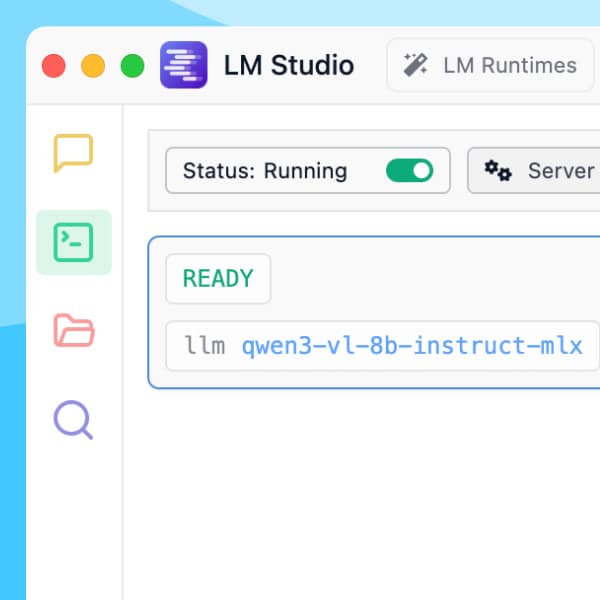 If Ollama is running, DEVONthink can chat with your local model through it. In LM Studio, click the Power User button at the bottom of the window, then the green prompt icon. Flip the switch to start the server and it should be available to chat with too. As a bonus tip, choose one app or the other but don’t try to run them simultaneously.