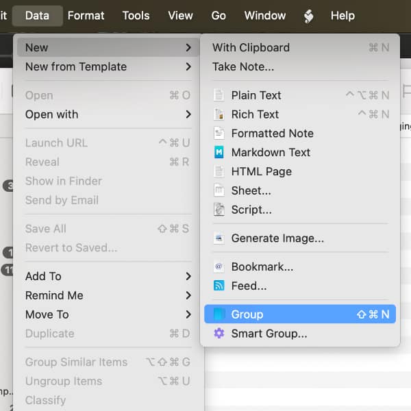 Groups are a core element in DEVONthink databases, functionally simlar to Finder folders. They are an excellent way to organize your documents and information, and in DEVONthink, there are many different ways to create them within your workflows.