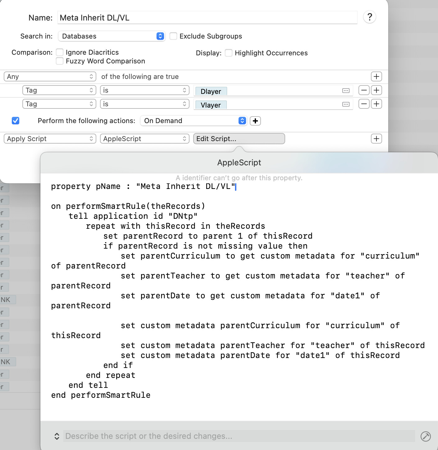 I’m trying to run a Smart Rule that inherits custom metadata from the parent group to the child records.