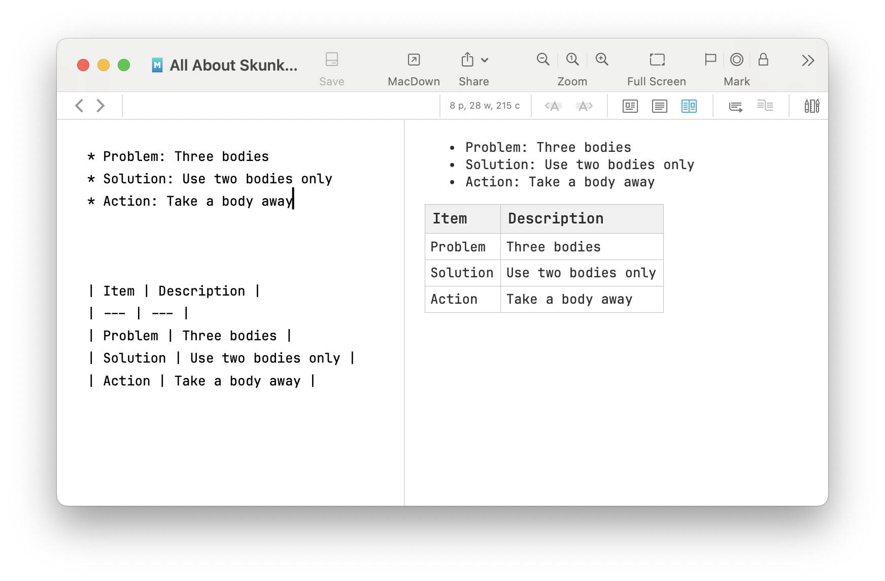 However, the transform to a table was meant as an example. If I know how to ask the AI inside DEVONthink, I might ask it other things as well like convert headings and following paragraphs into defnition lists or vice versa.