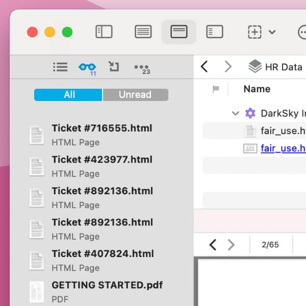 You can filter what you’re seeing in the list, where Favorites are always visible. In DEVONthink, choose Unread to view only items in the list you haven’t yet looked at. Choose All to see everything you’ve added. In DEVONthink To Go, tap the filter button at the bottom of the item list to toggle between all or unread items.