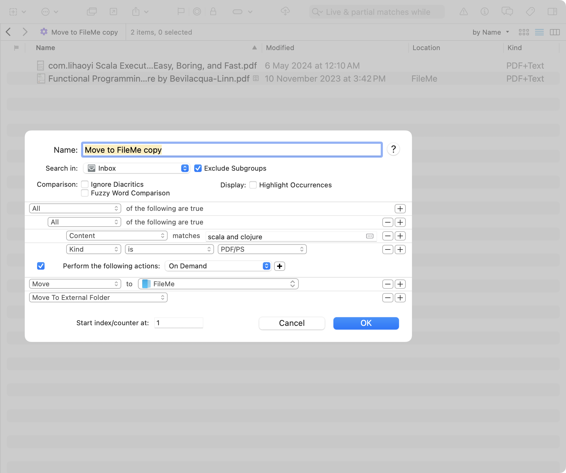However this doesn’t make any difference: The files in the indexed subgroup still show up in the Smart Rule.