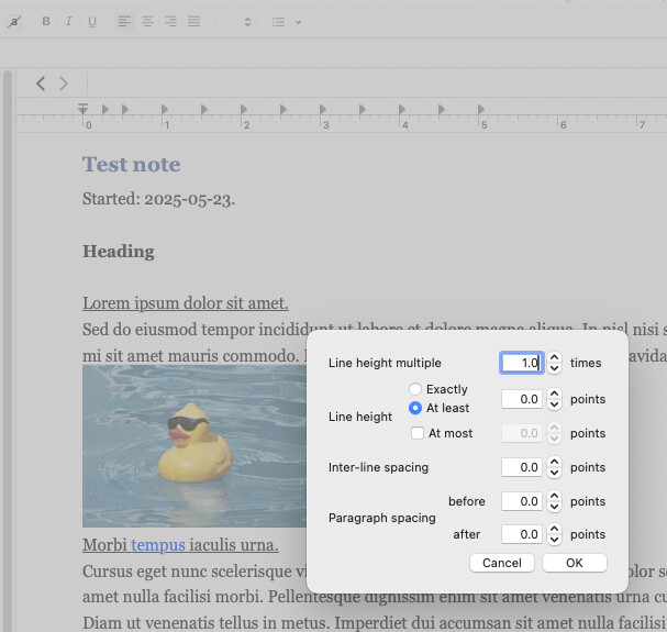 Secondly, what are the Settings > Editing > Format > Line Height Multiple or Line Spacing set to?