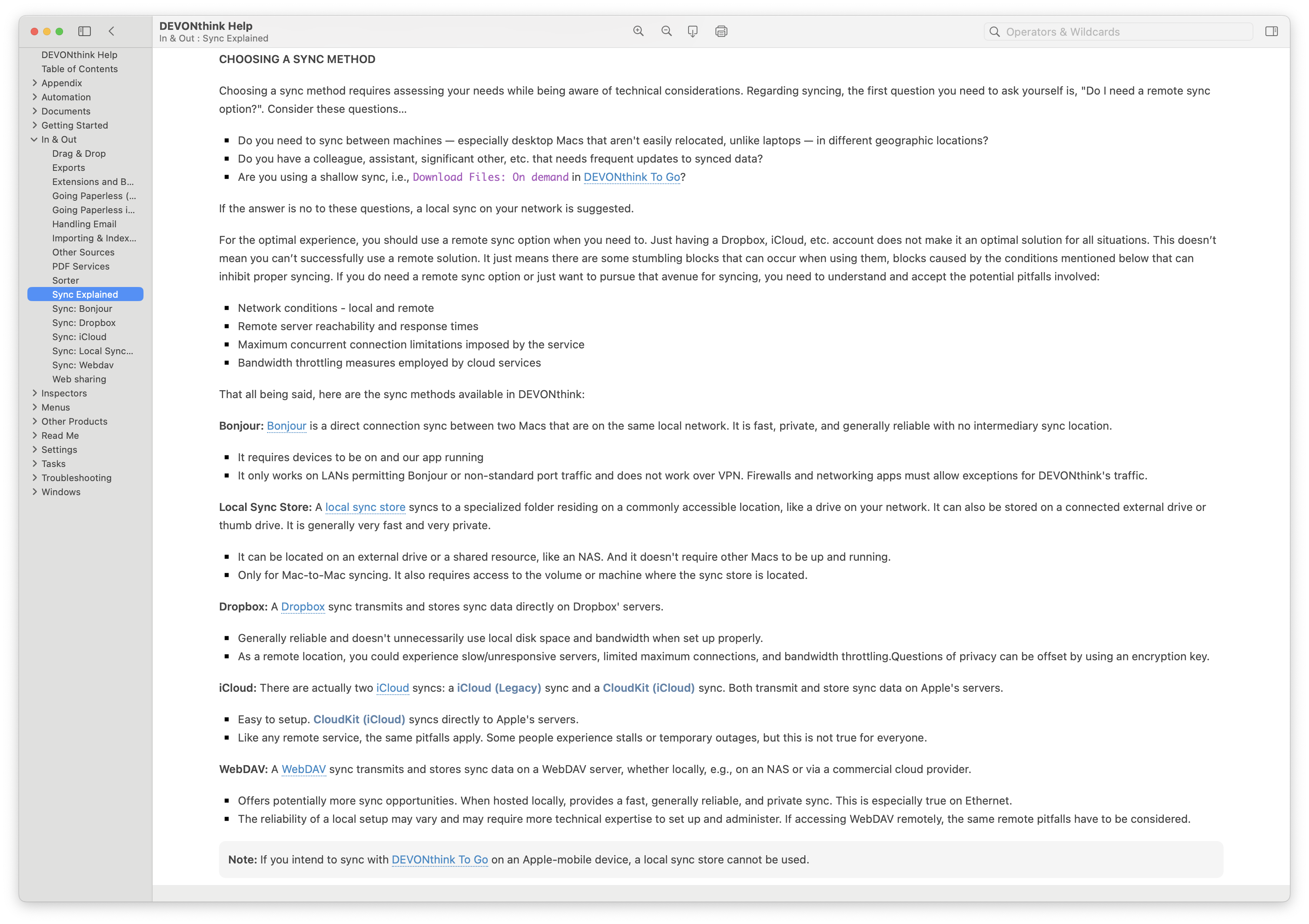 I personally use CloudKit, which gives me confidence that any document I’ve added to DEVONthink on my Mac will be accessible on my phone when needed. My usual workflow is: