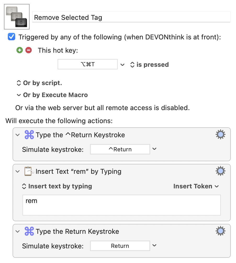 I would like to have a simple keyboard command to “Remove Tag”. Even better, I’d like to commit the keyboard command to a Stream Deck button.