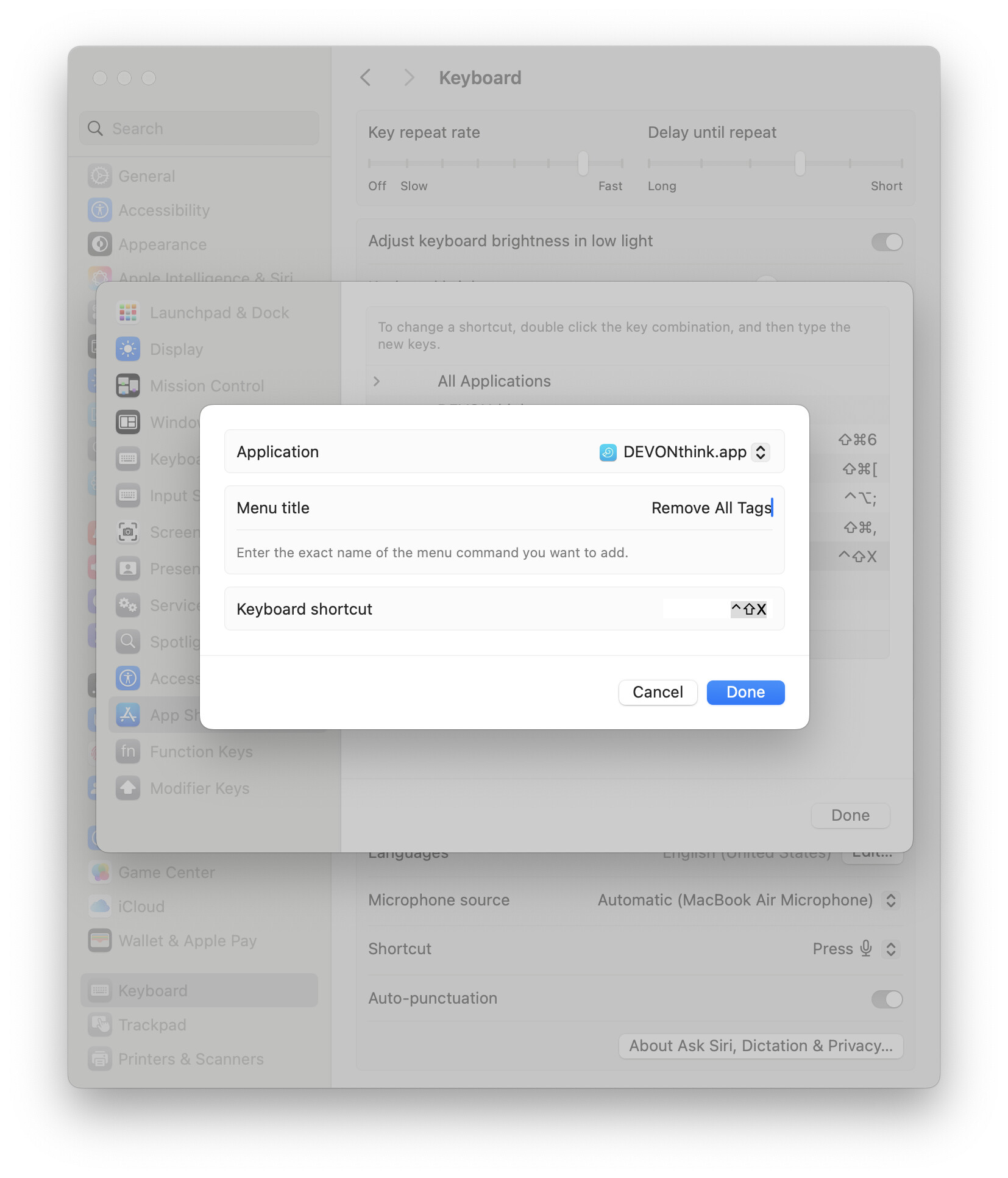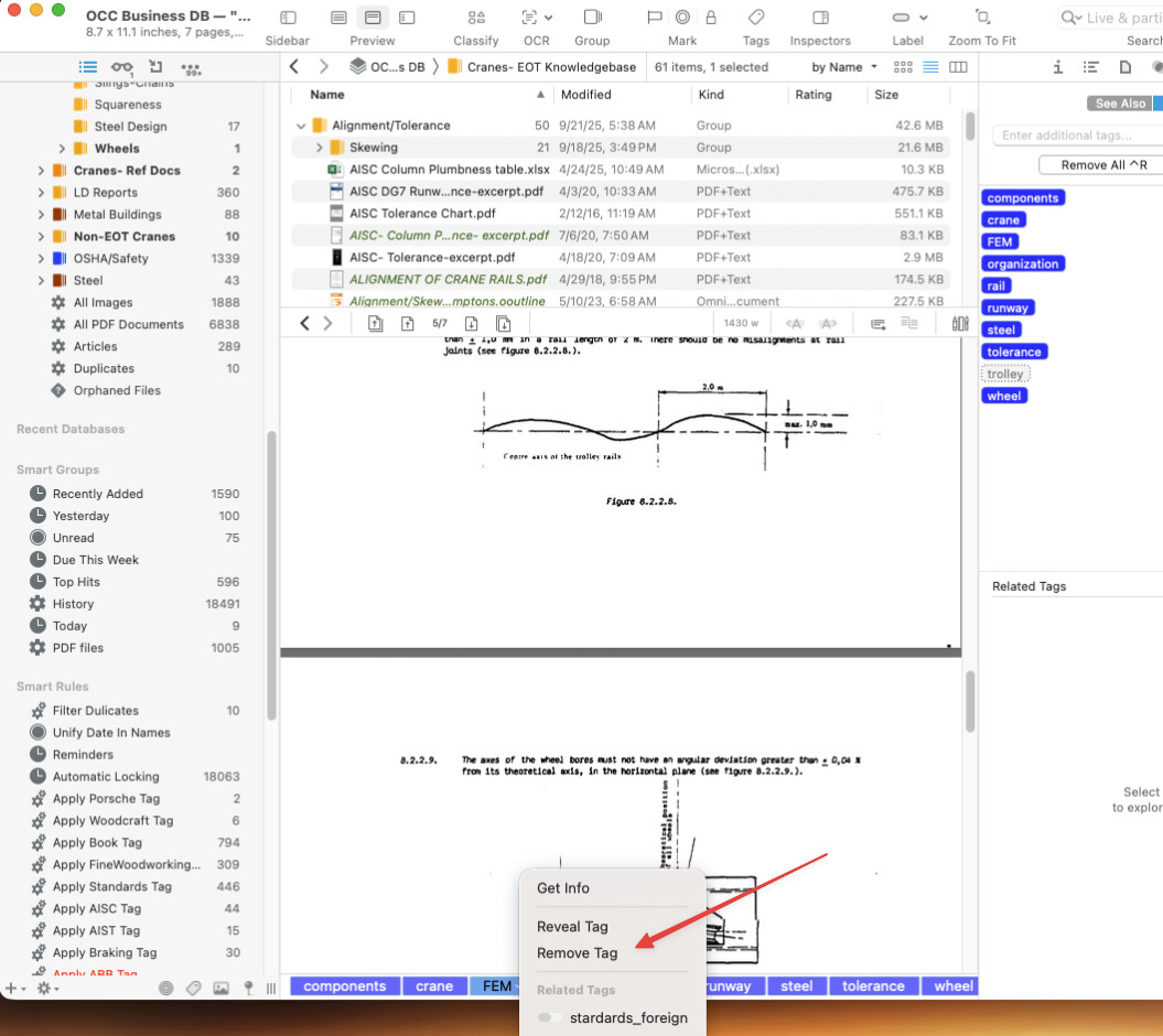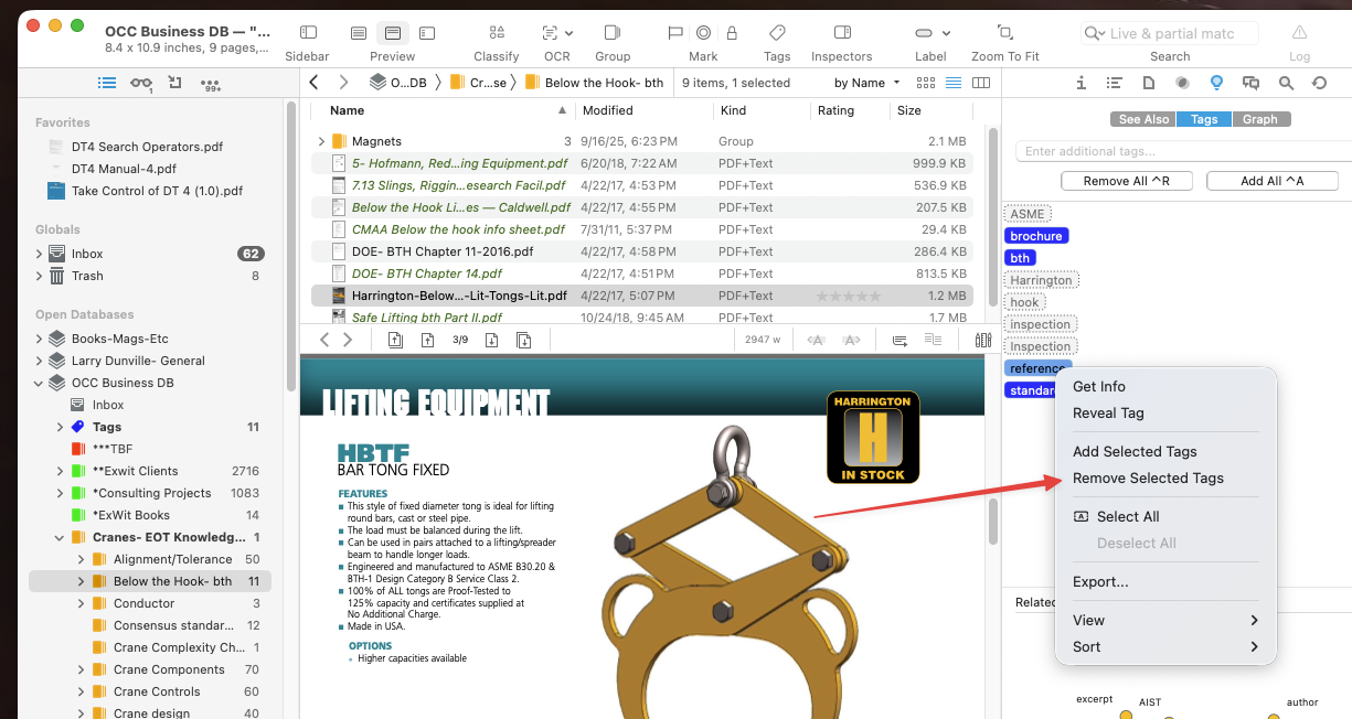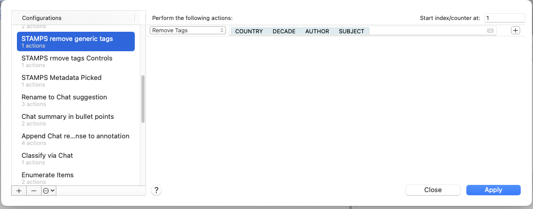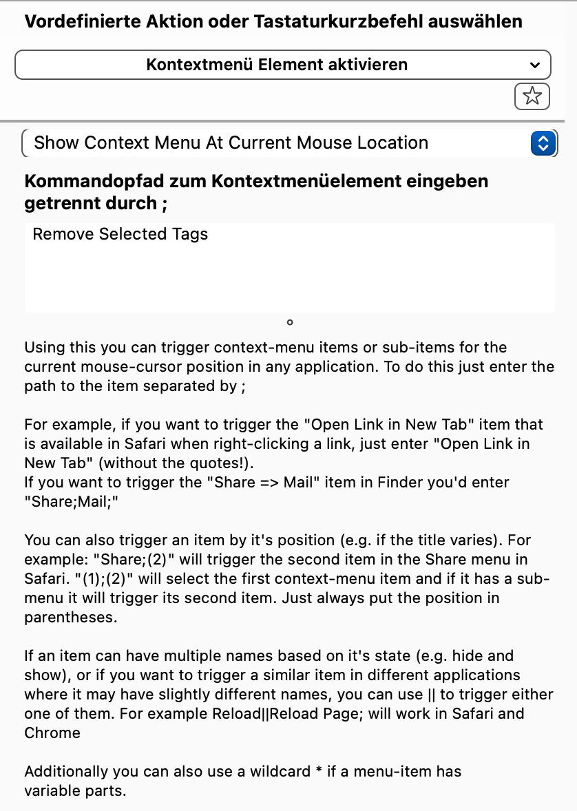 I want to assign a keystroke to “remove selected tag”. I could then assign the keystroke to a Stream Deck button, which would make the curation of my files much, much faster than the current multiple mouse clicks.