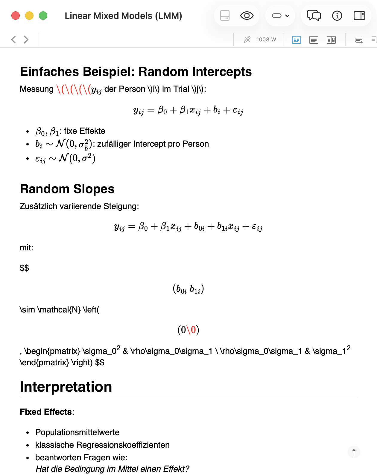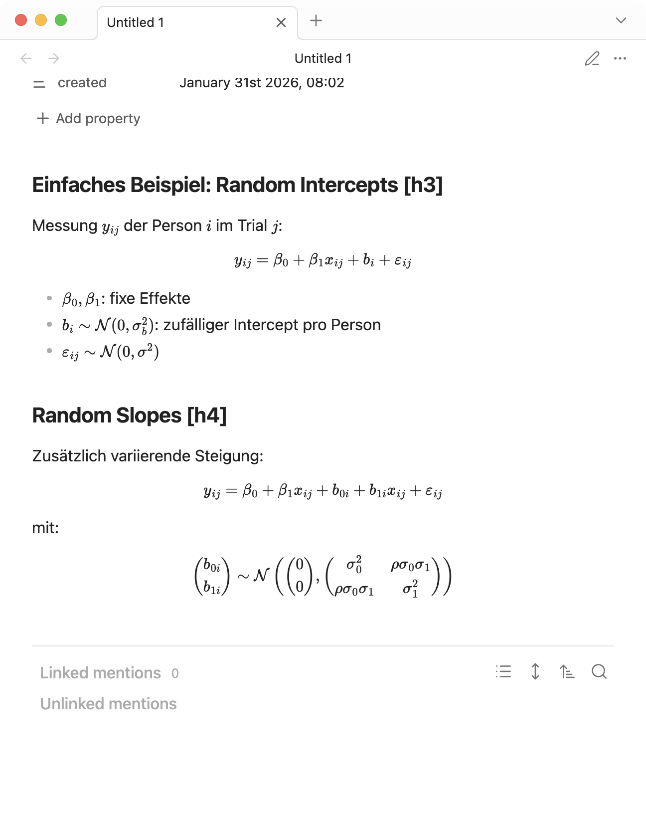 For comparison, the same raw Markdown and LaTeX in Obsidian: