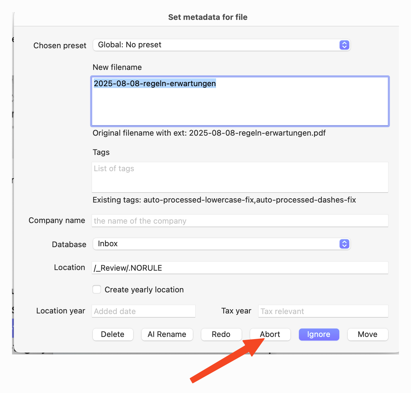 set {theButtons, minWidth} to create buttons {"Delete", "AI Rename", "Redo", "Abort", "Ignore", "Move"} default button "Ignore" without equal widths