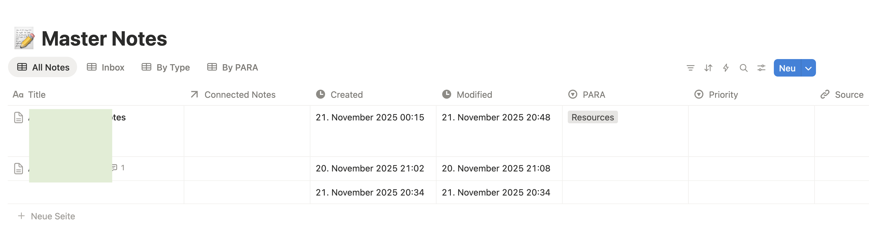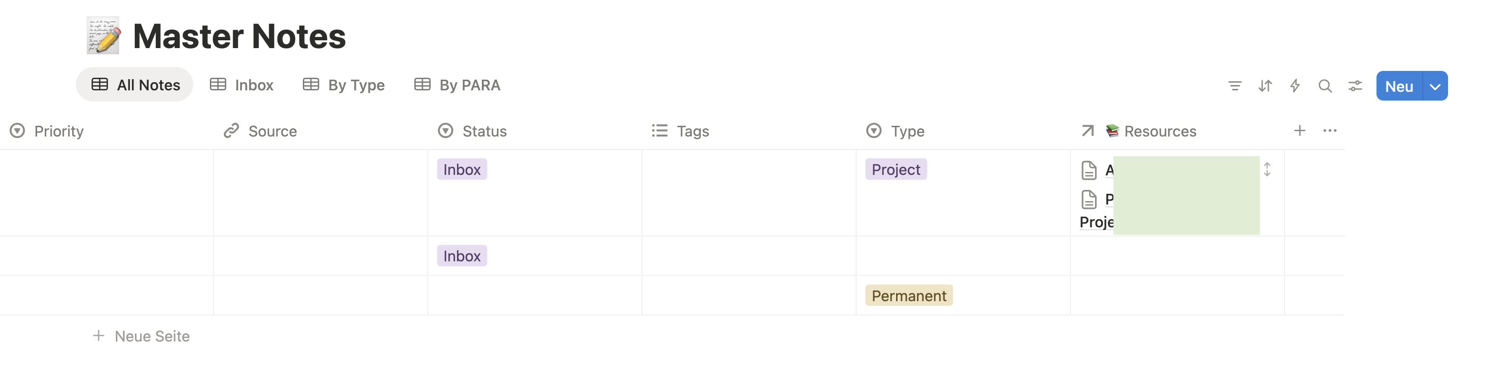 I attach a screenshot of my colleagues “Master Note” in Notion. I don’t want to switch to an online database, but this special feature would be great to have.