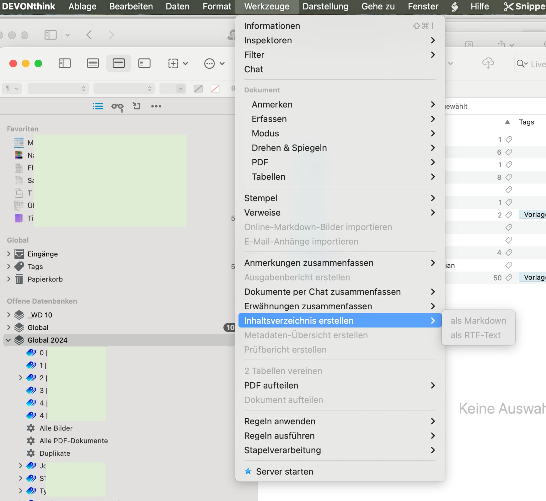I also attach a screenshot from my DT, where you can see that Create table of contents (German: Inhaltsverzeichnis) in my case isn’t active.