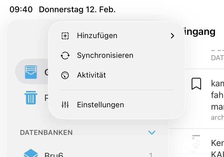 You access sync in your settings, which are behind the circle with three dots at the top of the iPad screen (don’t know where they are on the iPhone, as I’m still on DTTG3 there). Settings is the bottom entry, the three vertical lines with little circles on them. Click on that and you’ll get the preferences, which show the sync settings.