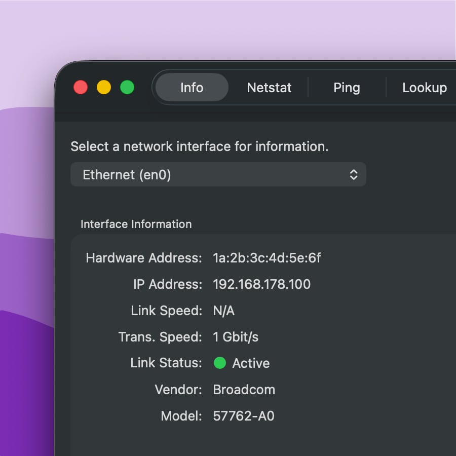 Of course we didn’t just touch it up a bit. The new version lets you open multiple windows and run commands in all the tabs simultaneously. Switch between the tools from the menu or via key commands. On the Info tab, a visual link status indicator immediately tells you that the network connection is active, and with location services enabled, you can now see the interface’s SSID and BSSID. For looking up DNS data, Neo Network Utility uses the ICANN’s latest RDAP implementation.