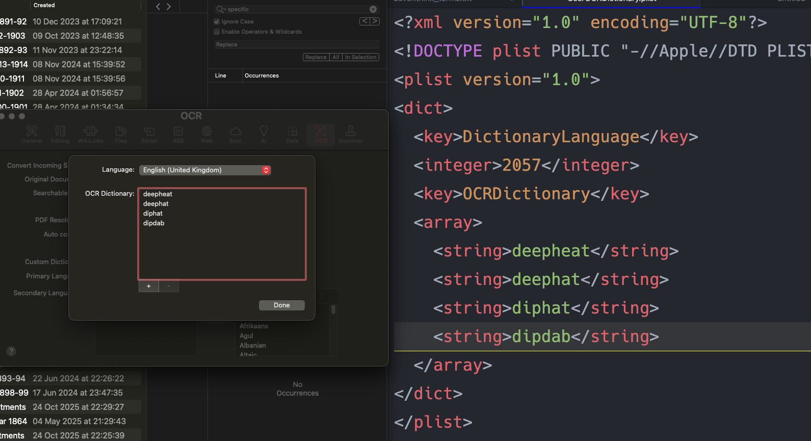 (also removing a word from the OCR custom dictionary GUI also removes it from the aforementioned plist.