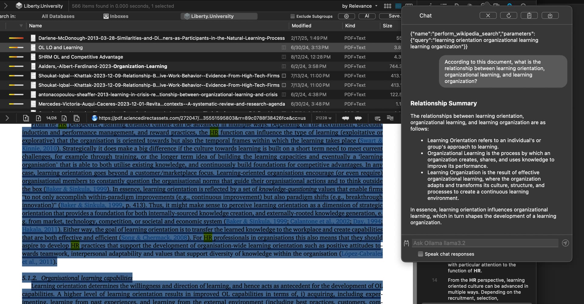 I assumed that opening up the PDF and opening up the chat attached to the PDF window, after configuring one of the supported AI APIs and models, would have fed the plain text of the document into the context window of the model so I could just “chat” with the document; otherwise, why not just load the document into an external LLM versus using the built in chat?