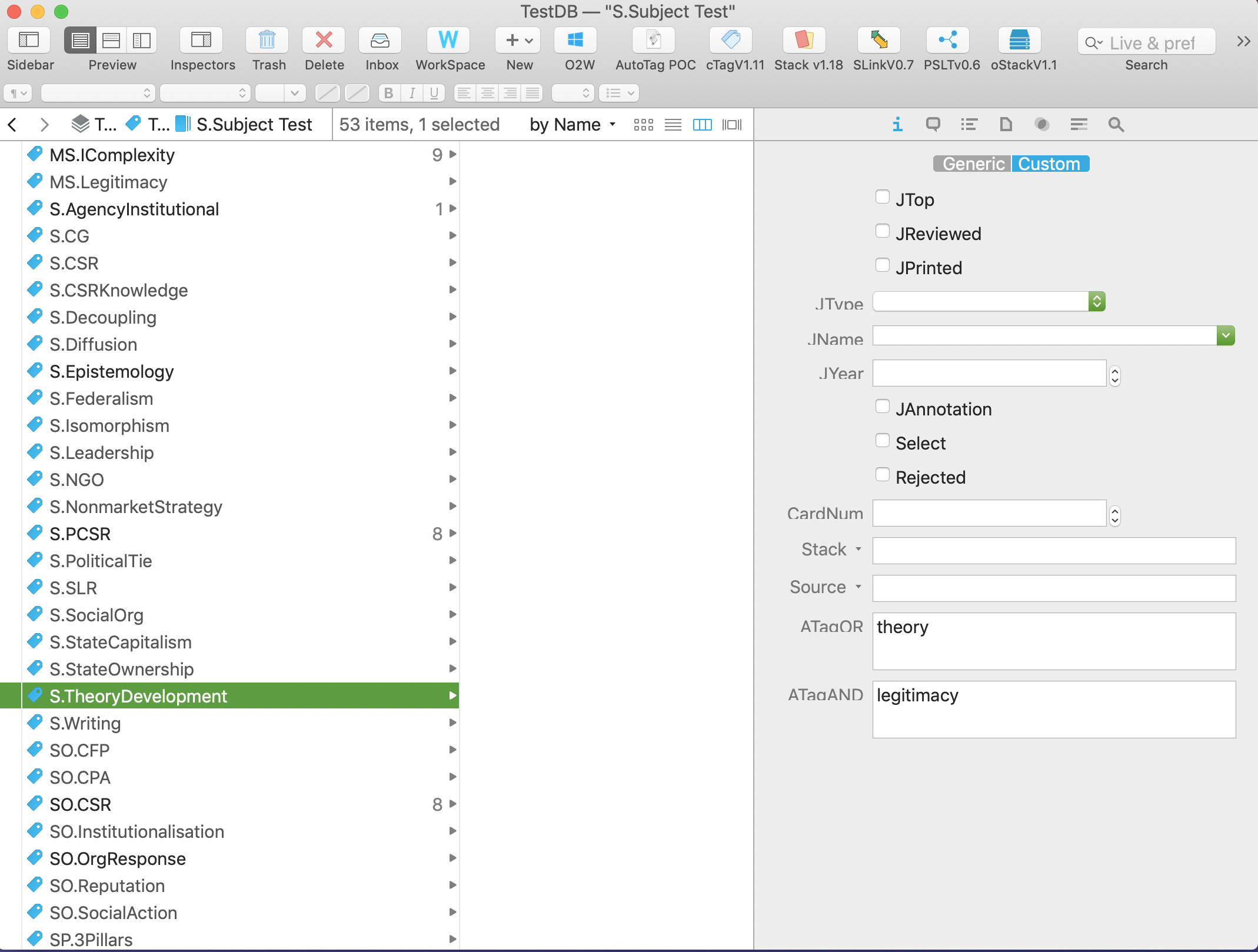 (1) Disclaimer: I believe that the concept of auto-tagging is more applicable to one or few items and to items with small amount of text at each activation (snippets of text, bills, pdf<20pages, etc). Because it is very difficulty to control the quality of auto tag-assignments to a large number of items or items with many words. Perhaps, the best application of auto-tagging is to classify an item when it’s in the inbox, or a project item, or a literature that is just downloaded. So, this script is designed for one or very few item. I hope I’ll be able to do this in one/few Items-focused tagging Some questions on concordance and one question on custom meta data.