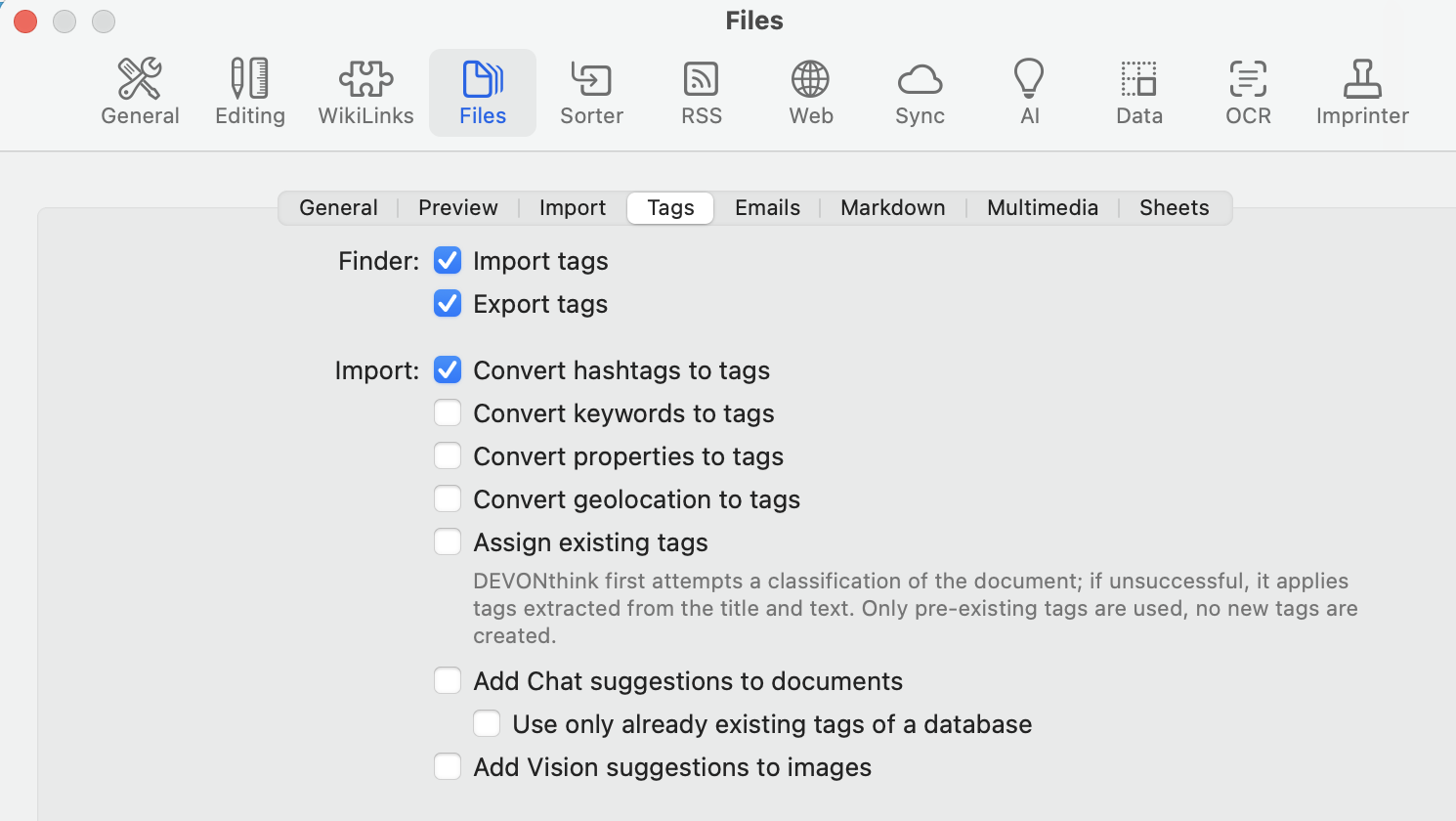 Unless you actually need the convert to tag option enabled you’re better off without it if you’re importing emails and web content since it might cause an issue.