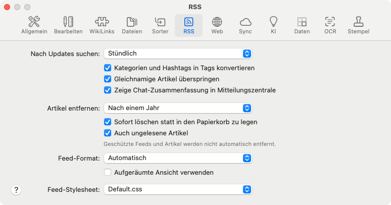 It works on the group ‘RSS feeds’