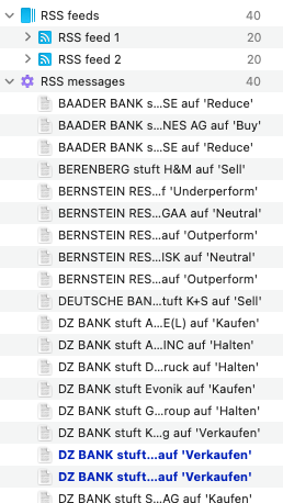 I am subscribed to a number of RSS feeds in DEVONthink 4. Some of them include the same messages, which show up as duplicates in DT4.