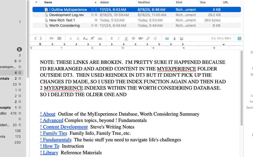 Excellent, I get it now. With your help and BLUEFROG’s I see that when I change the zoom on an RTF file, that same zoom level persists when opening all RTFs in the database.